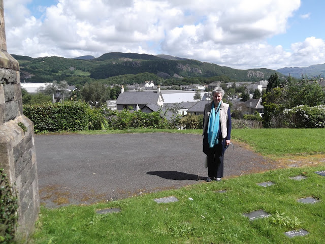 We wanted to locate R S Thomas’s ashes. We finally them in St John’s Church, Porthmadog, the gateway to the Lleyn Peninsula on which R S Thomas spent his last thirty years. We had trouble finding any plaques and had to ask a woman who had been visiting the place. Finally, we found his ashes and plaque with all the other ashes by the church wall, with a good view over the neighbouring valley. His plaque is tiny and already fast grassing over. There is no indication that he was one of the greatest poets of the second half of the twentieth century, or a minister in the Church of Wales. He had burnt his cassock on the beach at Aberdaron, in protest that the Church did not finally look after them in their old age (as he had expected).
